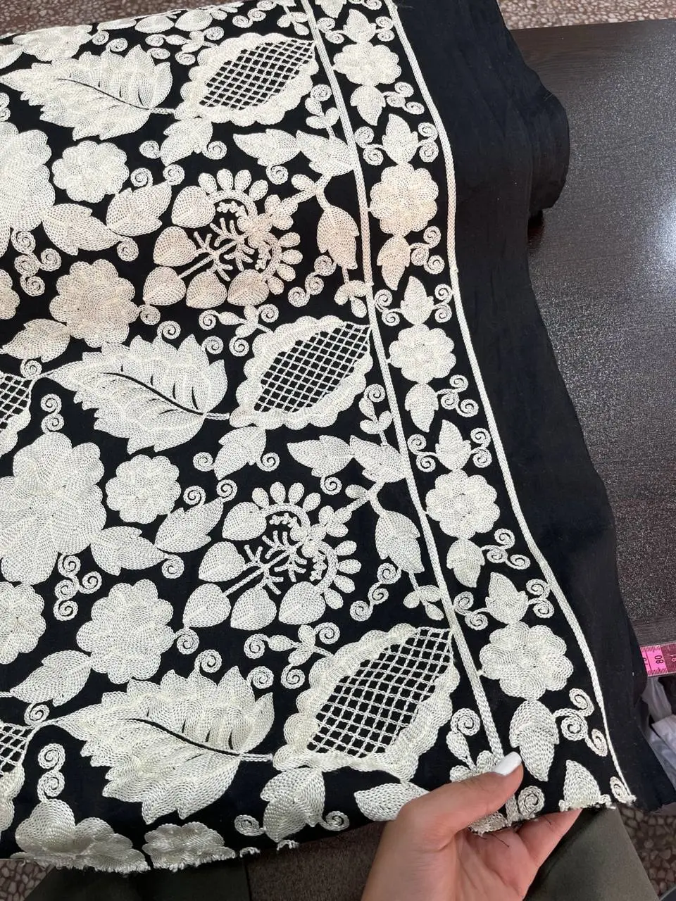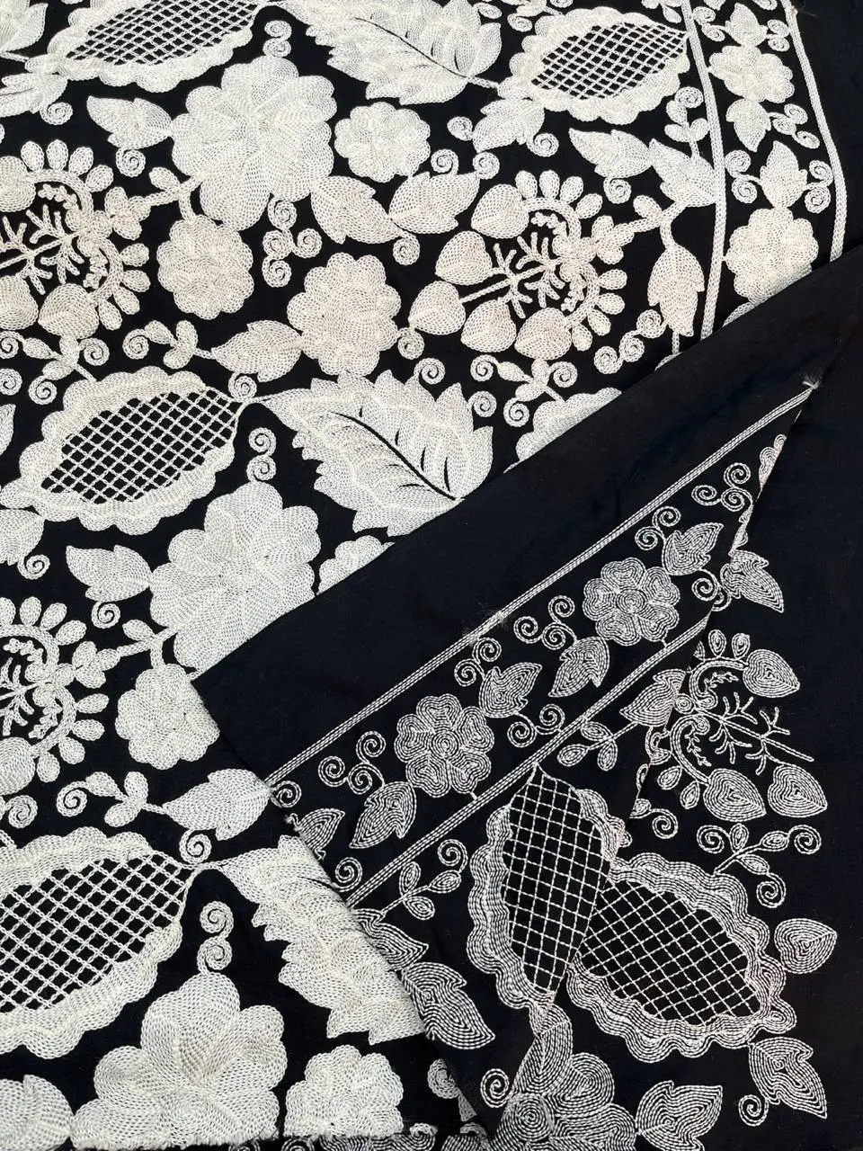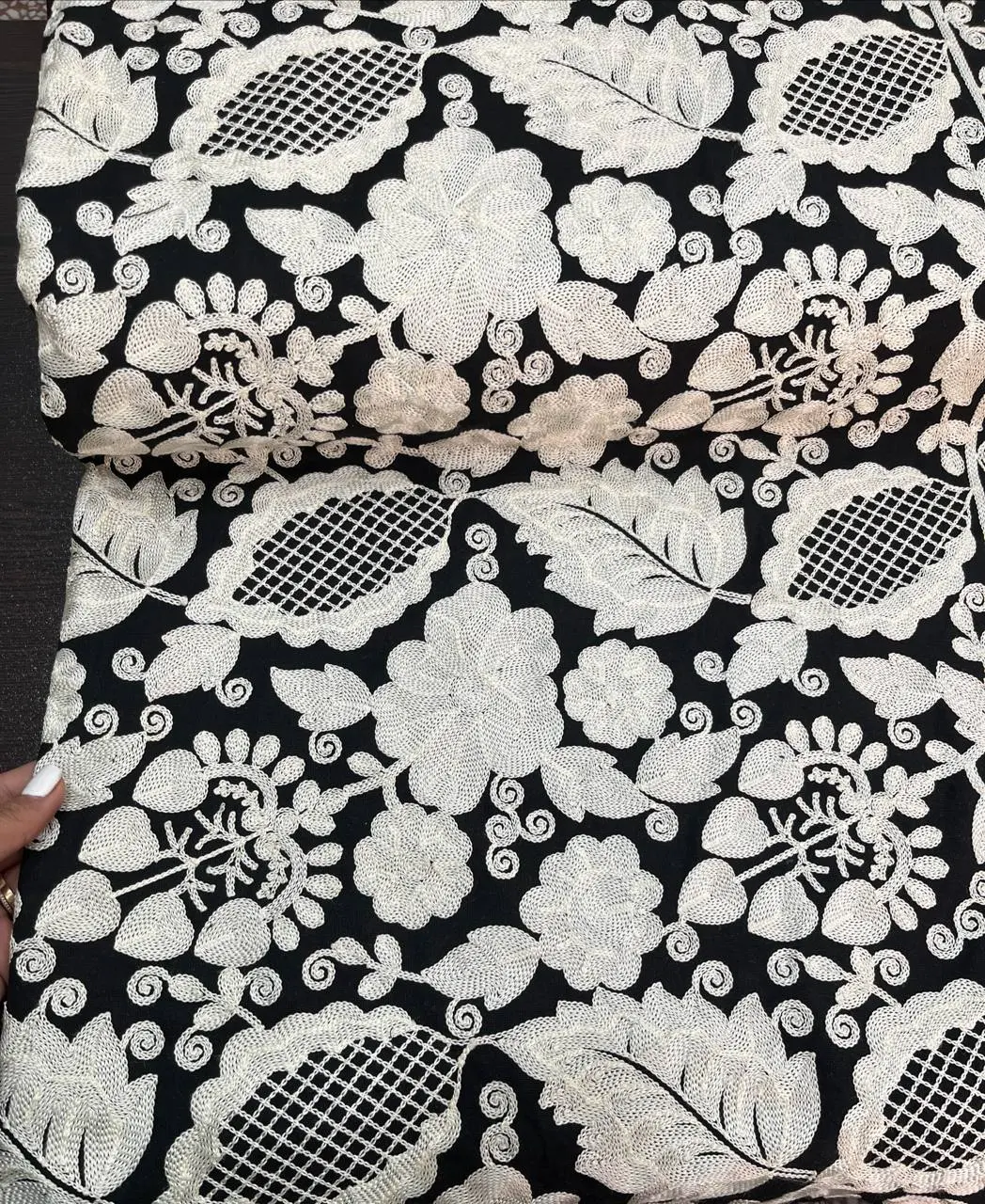 سوزن دوزی لینن مشکی طرح سفیدموارد استفاده: وست، جلیقه، کراپکت، کت، مجلسی