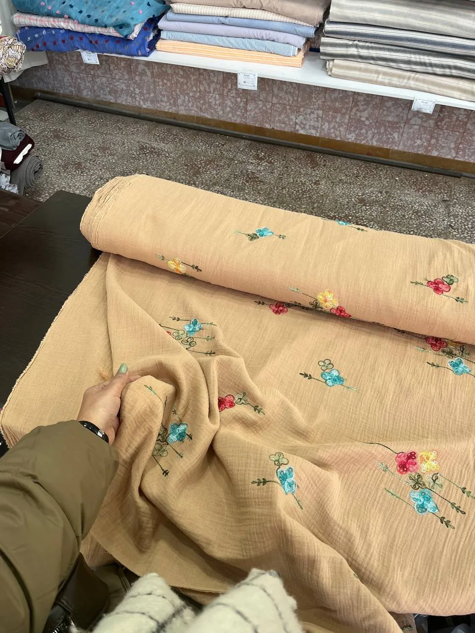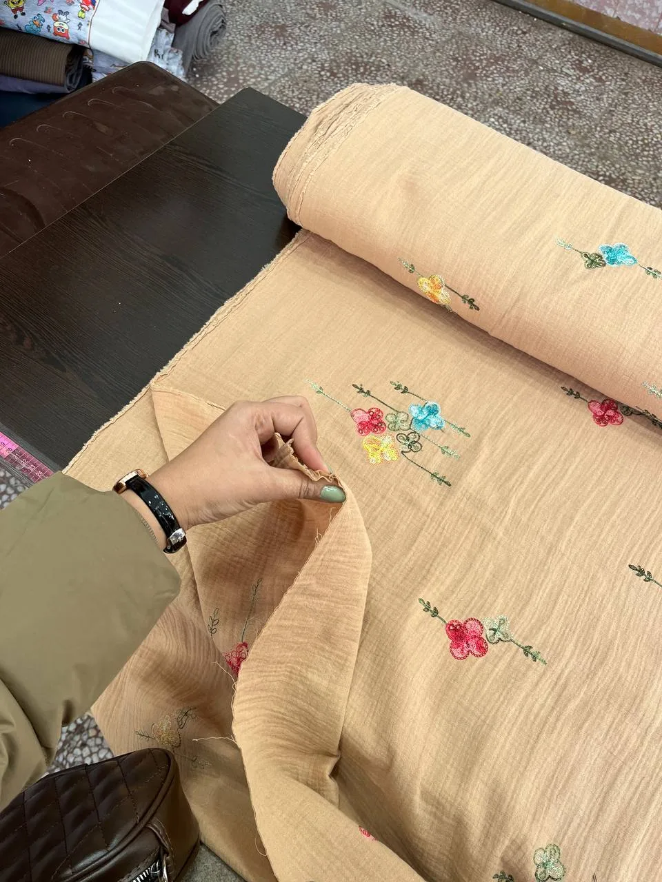 موسلین خامه دوزی کرمموارد استفاده: شومیز، شلوار، ست راحتی، کودک