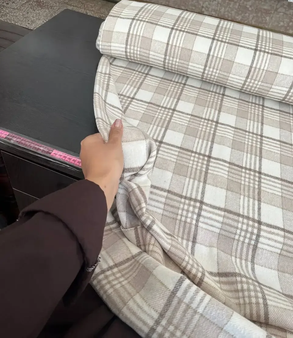 پشمی چهارخانه موهردار کرمی