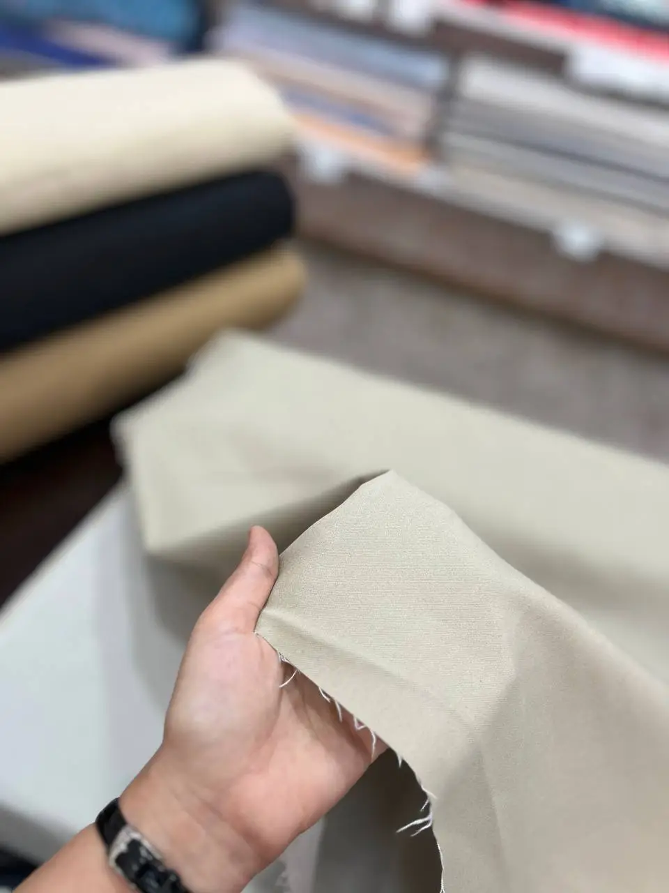 کتان کش وارداتی استخوانیموارد استفاده: شلوار،ترنچ کت،بامبر جکت،کاپشن،وست،کت،دامن
