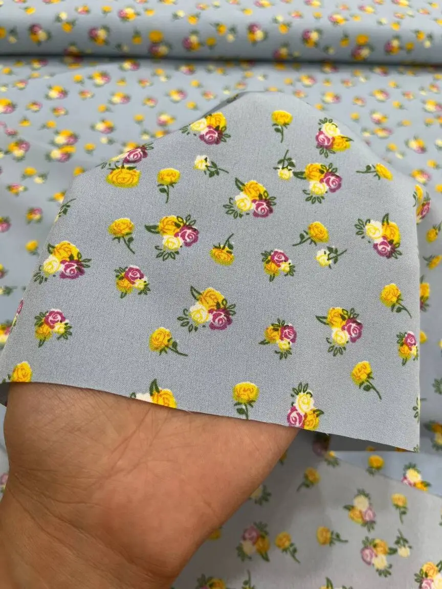 کرپ الیزه گل گلی آبی روشنموارد استفاده: تابستانه،بهاره،مانتویی،راحتی